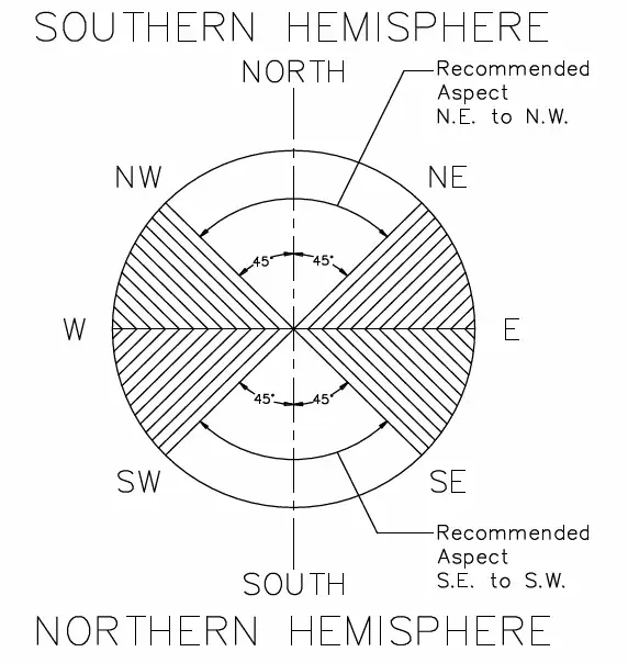 To help maximise system performance, solar collectors should be installed with an optimum orientation facing true north (in the southern hemisphere) or true south (in the northern hemisphere). Always check for true north or true south using a compass or other suitable device.